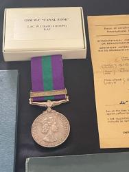 4103890 - LAC - William John Budd - Royal Air Force - With Service Book and certificate of service. Medal Box of issue. From Feltham - Middlesex. GSM - Canal Zone Clasp. Medal bar on reverse for wear.