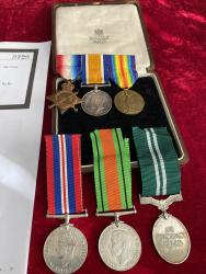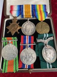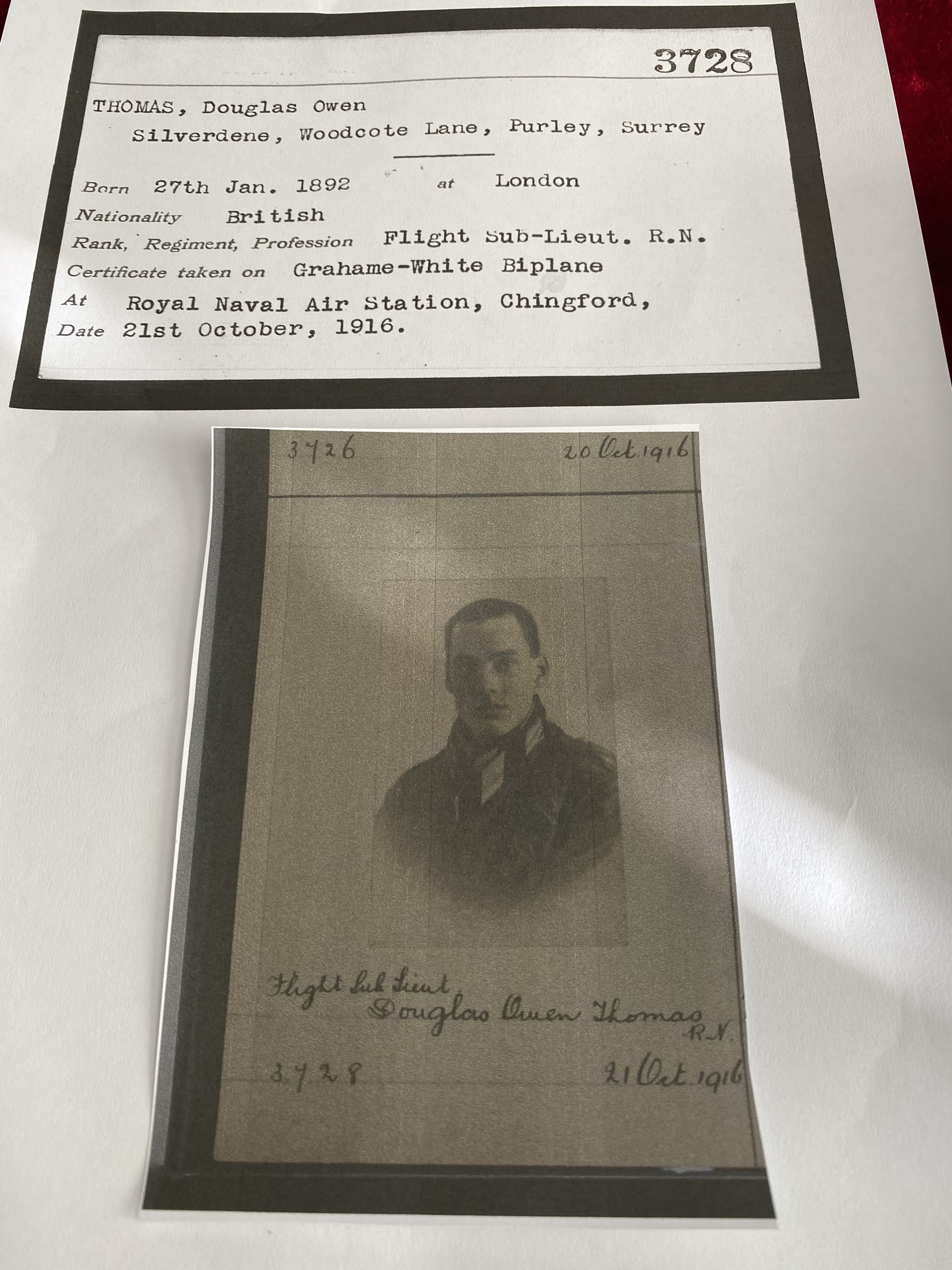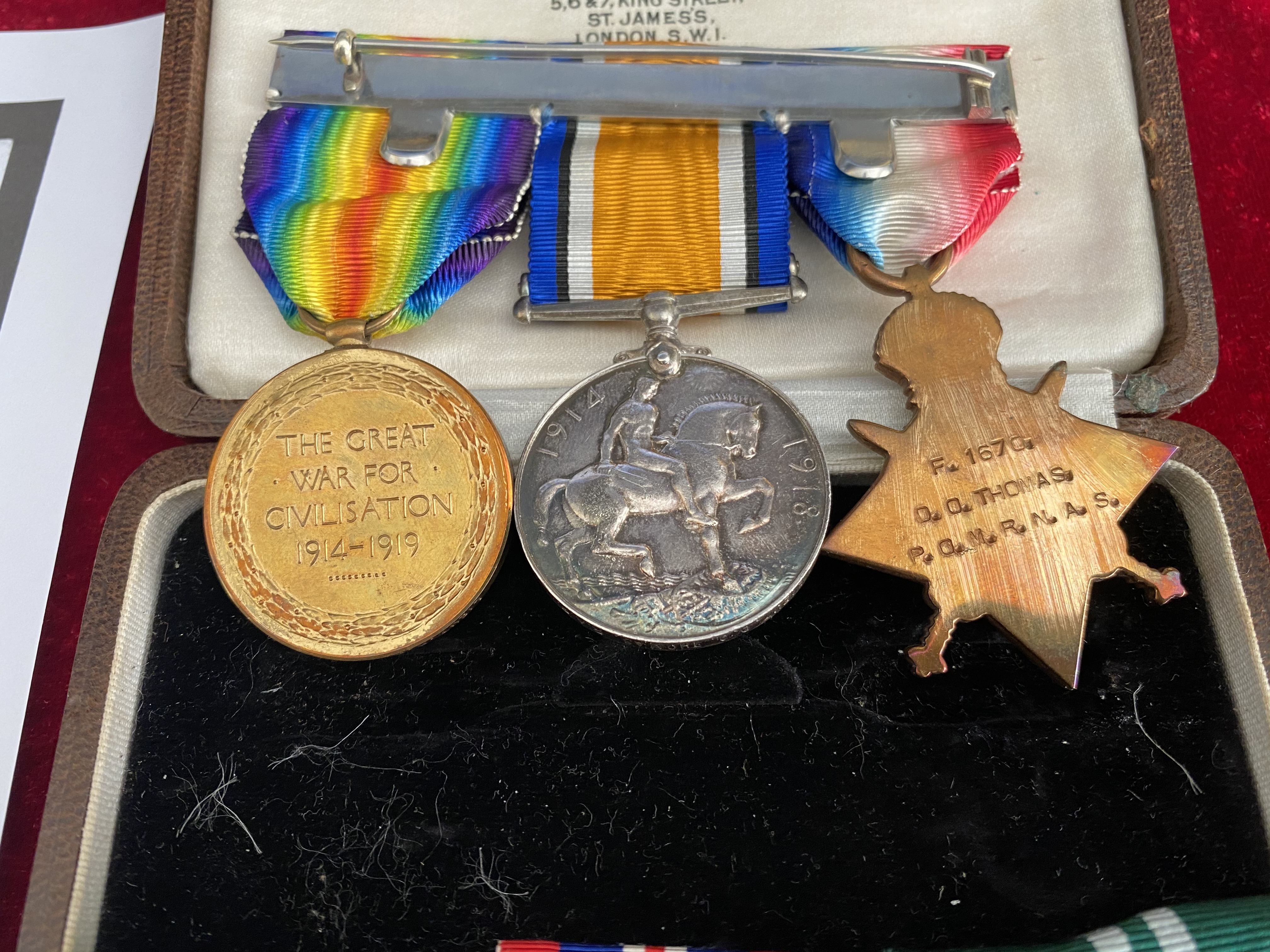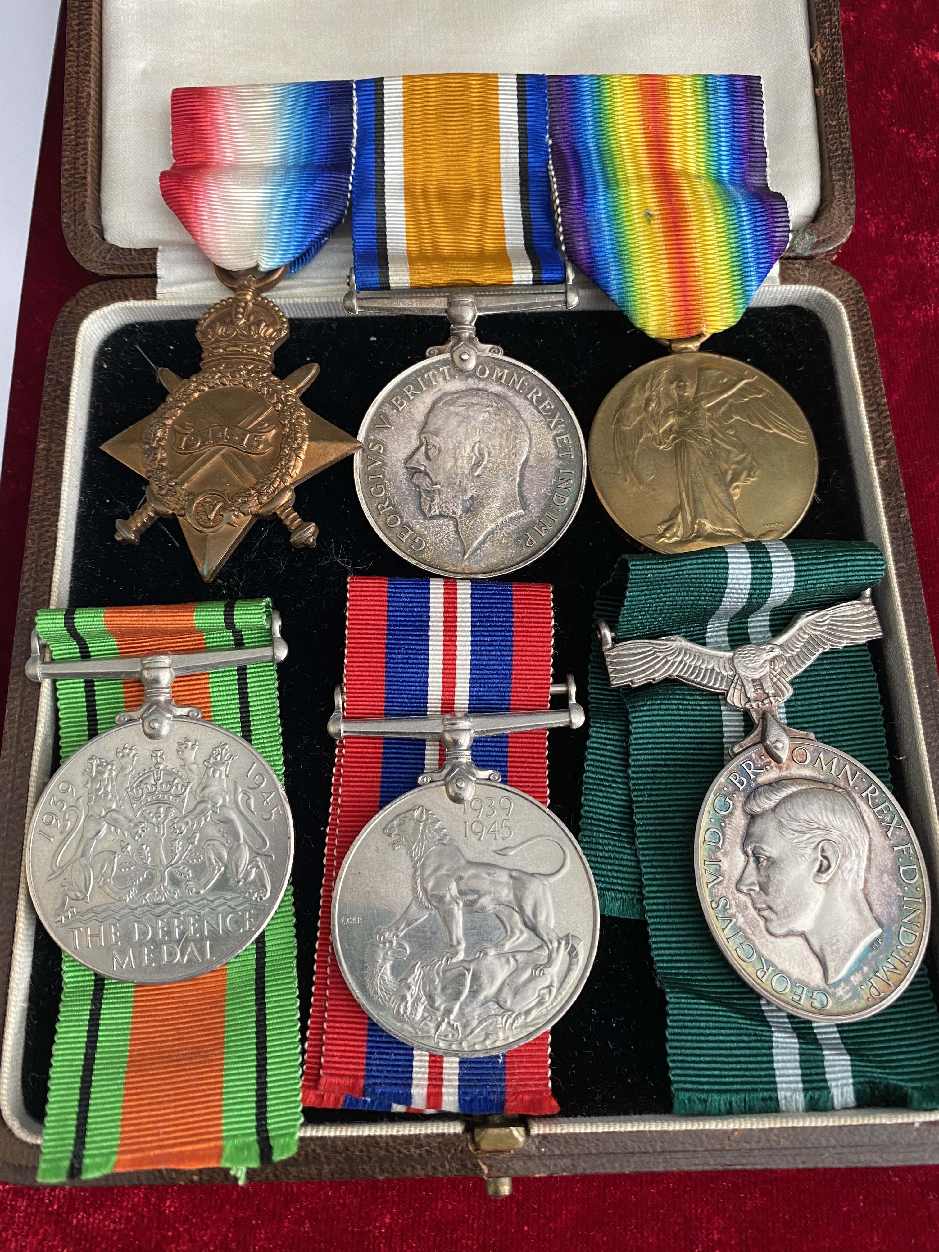 Royal Navy Air Service & R A F Medal Group of 6 Medals; Consisting of 1914/15 Star named to F.1670 D O Thomas - P. O. M. R. N. A. S. ( Petty Officer Mechanic Royal Navy Air Service ) British War Medal - Lieutenant D O Thomas - Victory Medal - Lieutenant D O Thomas; WW2 War Medal ( Unnamed as issued ) Defence Medal ( Unnamed as issued ) Air Efficiency Award named to Flight Lieutenant D O Thomas R A F V R - Comes in a Spinks & Son Ltd Box With Officers name on; Flight Lieutenant D O Thomas.Flight lieutenant Douglas Owen Thomas Mid Served in Gallipoli in 1915 Armoured Cars Division. On The Aero Certificate; Douglas is named as a Flight Sub Lieutenant, Royal Navy - Taken on a Grahame - White Biplane Addresses; Wood field Road, Somerville Gardens, Leigh on Sea, Essex. I have managed to find a picture photocopy of Douglas Owen Thomas. Very Nice Original Group of medals. Plenty of research left to be done on this group. SOLD SOLD SOLD SOLD SOLD