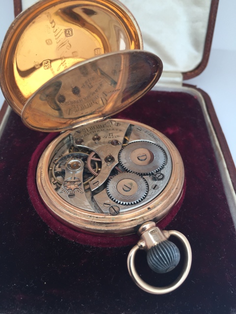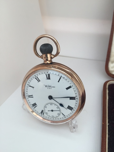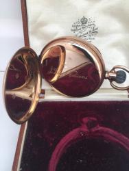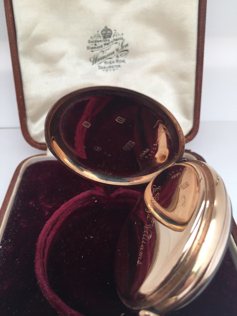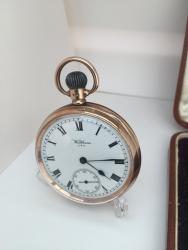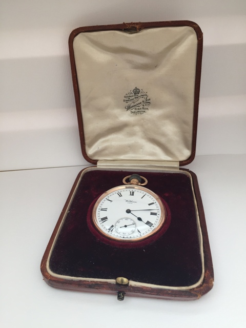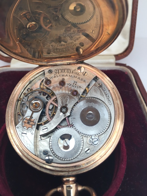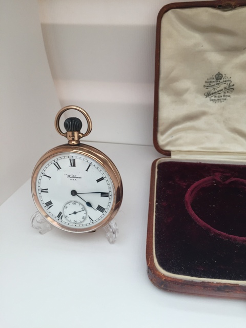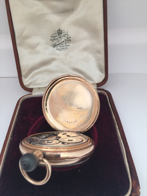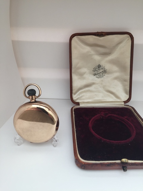 9 ct Gold Pocket Watch To Captain Jordan Lloyd Williams - Denbighshire Yeomanry & Royal Flying Corps. Very exceptional 9ct Gold Pocket watch. John Jordan Lloyd - Williams Esq; M C - Military Cross Winner, Captain in Denbighshire Hussars, Yeomanry and Royal Flying Corps. Served in Egypt and Palestine. Marked out the Desert route between Cairo & Baghdad. Stayed in Amman after the War, One of Lord Trenchard's men to join the Police College and had a Metropolitan Division and was made the First Police Air Inspector. Called to the Bar in 1943. Chief Constable of Cardingshire. Attended Oswestry School - Died in 1948. Born 1894 - An article from Top cover dated 30th October 1917: Today a German two seater managed to avoid the Fighter patrols and flew over the British back area's on the Beersheba Flank. However, when the German Airmen were about to recross the lines, they were spotted by a Bristol F2b ( A7194 ) From 111 Squadron, with Captain Arthur Hicks Peck and Captain John Jordan Lloyd Williams.They Succeeded in Shooting the Aircraft Down and the crew were taken Prisoner. Their Photographic plates, marked maps, and notes were recovered by the British instead of reaching the Turkish Forces. The intervention no doubt prevented the enemy forces from learning more about the British plan and assisted in the successful assault the following day.Military Cross citation reads as follow's : Captain John Jordan Lloyd Williams Yeomanry attached Royal Flying Corps : For Conspicuous Gallantry and Devotion to Duty in Aerial Fighting. He Shot down three Hostile aeroplanes in a very short period, showing great initiative and Fearlessness on all occasions. London Gazette : 23rd April 1918. Also an entry and Picture in the Australian war memorial: Posted in 1917 Operations Palestine Royal Flying Corps 111 Squadron Jordan Lloyd-Williams. SOLDIn August 1917 Capt Jordan Lloyd- Williams was attached to 111 squadron R F C in Palestine to serve as an Observer/ Gunner in Bristol F.2b two seater Fighter's. Between 8th October and 8th November 1917 he was credited with three enemy aircraft destroyed and two captured.The Gold Waltham pocket watch is correctly Hallmarked 9 - carat .375 - Gold Birmingham Hallmark circa 1919 - started production in 1917 - 17 Jewels Inner case stamped A W W. co - Dennison Watch case - serial number 21225407 Comes in a case ( Not the original ) However fits nicely inside and I would say is period to watch. Initials inside the pocket watch. The pocket watch itself has been in a collection of pocket watches since the 1970s were it was purchased from the Family. ( Unfortunately No medals ) The watch itself has been looked after and seems to keep good time. This Pocket watch would look good in any collection. SOLD