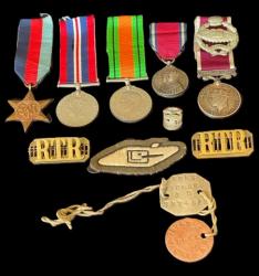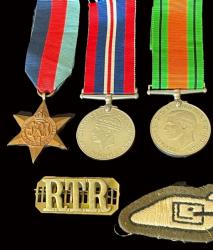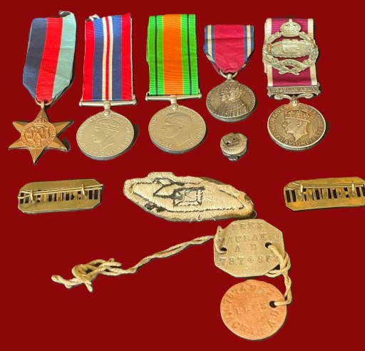 7874962 Cpl Donald Alexander Macrae Royal Tank Regiment. Came from: Invernessshire - Scotland - Born: 1907 Comes with Original Cap badge shoulder tittles – Cloth badge – Dog tags – Small Tank badge - 1939/45 Star - War and Defence medals Coronation medal (Unnamed)Long Service Good Conduct medal - named 7874962 Cpl D A Macrae. Royal Tank Regiment. Nice original group.