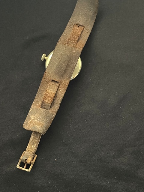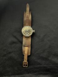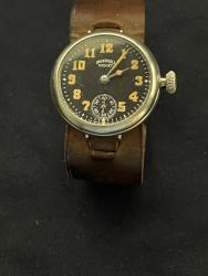 WW1 Officers - Ingersoll Midget Watch - Circa: 1916 - Black Dial -Serial Number: 45401179 - Nice original watch and in fully working Order. Still has the Original Guarantee paper disc on the inside. The watch has just had a Full service - So works very well. The strap I would say is the original strap and to period - Brown leather. Good to get these watches in working order.