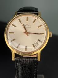 Zenith Gents Automatic Wristwatch Was Presented By the - S A S C - OFFICER's 1969 - Skill At Arms Corps - UK - Serial Number - 2542PC. circa 196o's Gold Plated - Switzerland made. Case size 36mm - 12 hour dial. 18mm strap width - Mechanical Automatic - Rare with date window between 4 & 5. Fully working as it should. Great collectors piece or to be worn on a regular days basis - Some age related marks but overall very good working condition. The Small Arms School Corps (SASC) is a small corps of the British Army responsible for maintaining the proficiency of the army in the use of small arms, support weapons and range management.Prior to 1851 the majority of British soldiers were issued with Brown Bess, a smooth-bore, muzzle loading musket which had seen duty in one form or another since 1704. Lack of accuracy was compensated for by the practice of firing in volleys. Musketry, as shooting was known, was more like parade ground drill and as such was a matter for the Drill Sergeant. In June of that year Colonel Hay arrived at Hythe with a small staff of officers. On the 1st August the first instructor, CSgt MacKay of the 19th Foot, was appointed. By the 15th of September a further three instructors were on strength. They were Sgt Ruston (3 Gren Gds), Sgt Lobes (2 Gren Gds) and Sgt Morris (97th Regt). The first mention of the establishment of the School was in the Army List of 1854 when it was referred to as the School of Musketry, a name it bore until 1919 When its name was changed to the Small Arms School. In September 1855 a Corps of Instructors was added to the establishment, consisting of 100 First Class and 100 Second Class Instructors who, as soon as they were sufficiently experienced (except for three who remained at Hythe), were distributed to Depot Battalions and Regiments as required. These men were the Corps of Instructors of Musketry, a misnomer as muskets were being withdrawn from service. The badge of the School was crossed rifles surmounted by a crown. In 1926 the School expanded to include the Machine Gun School at Netheravon. The Machine Gun Training Centres had been established in 1914 at Grantham and by the BEF in Wisques, France. This was followed on 14 Oct, 1915 by the creation of the Machine Gun Corps (MGC). Originally equipped with the Maxim, these were replaced by the Vickers shortly after formation of the MGC. In 1929 the present badge was introduced, comprising of crossed rifles and a Vickers machine gun, surmounted by a crown and surrounded by a laurel wreath. The title Small Arms School Corps came into being at this time. On the occasion of the centenary of the Corps in 1953, ’March of the Bowmen’ from the Robin Hood Suite was adopted as the corps march. In 1969 the School moved from Hythe to Warminster where Headquarters SASC remains to this day.