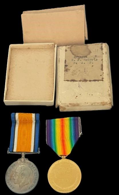 2/Lieutenant - E. A. Roberts - R A F Original Box(Some staining to the box) and original medal envelopes.