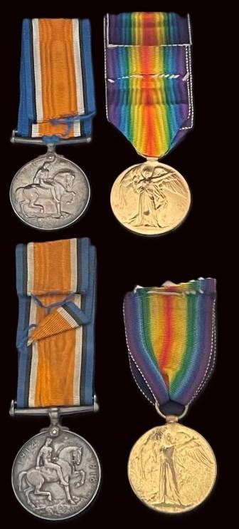 WW1 - Brothers Medals - Pair on top row is issued to Deal -11823-S Pte - John J Miller Royal Marines – Bottom Row is his brother 106726 Pte John William Miller - Royal Army Medical Corps – Wounded Shell Shock