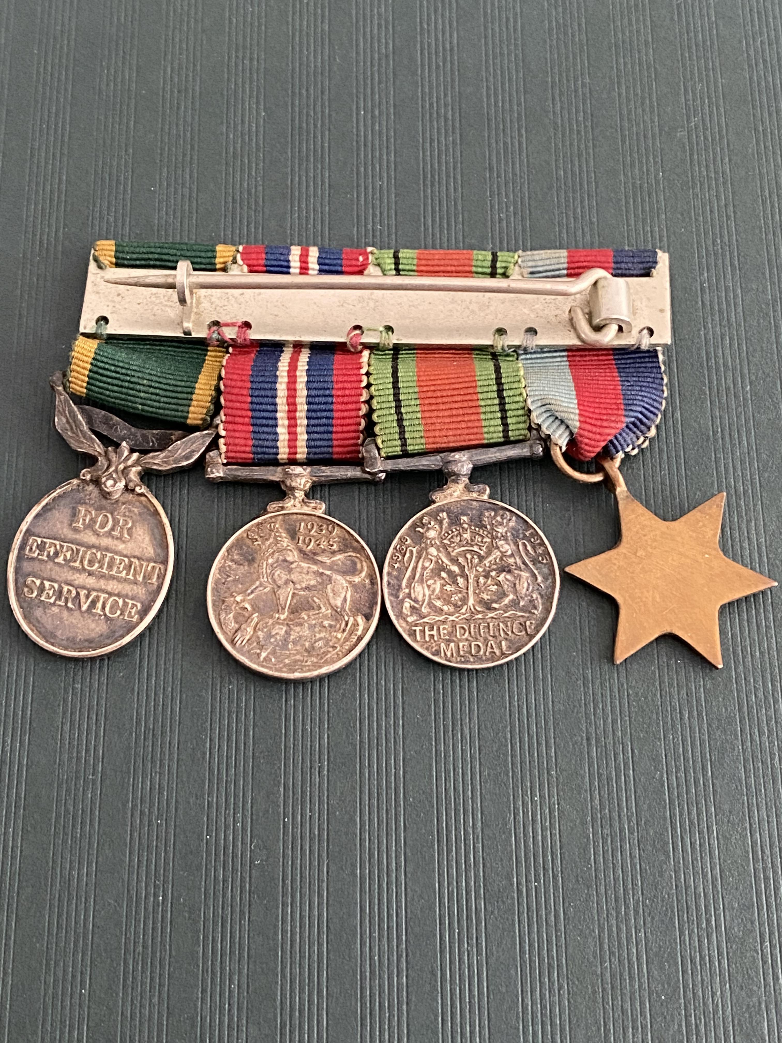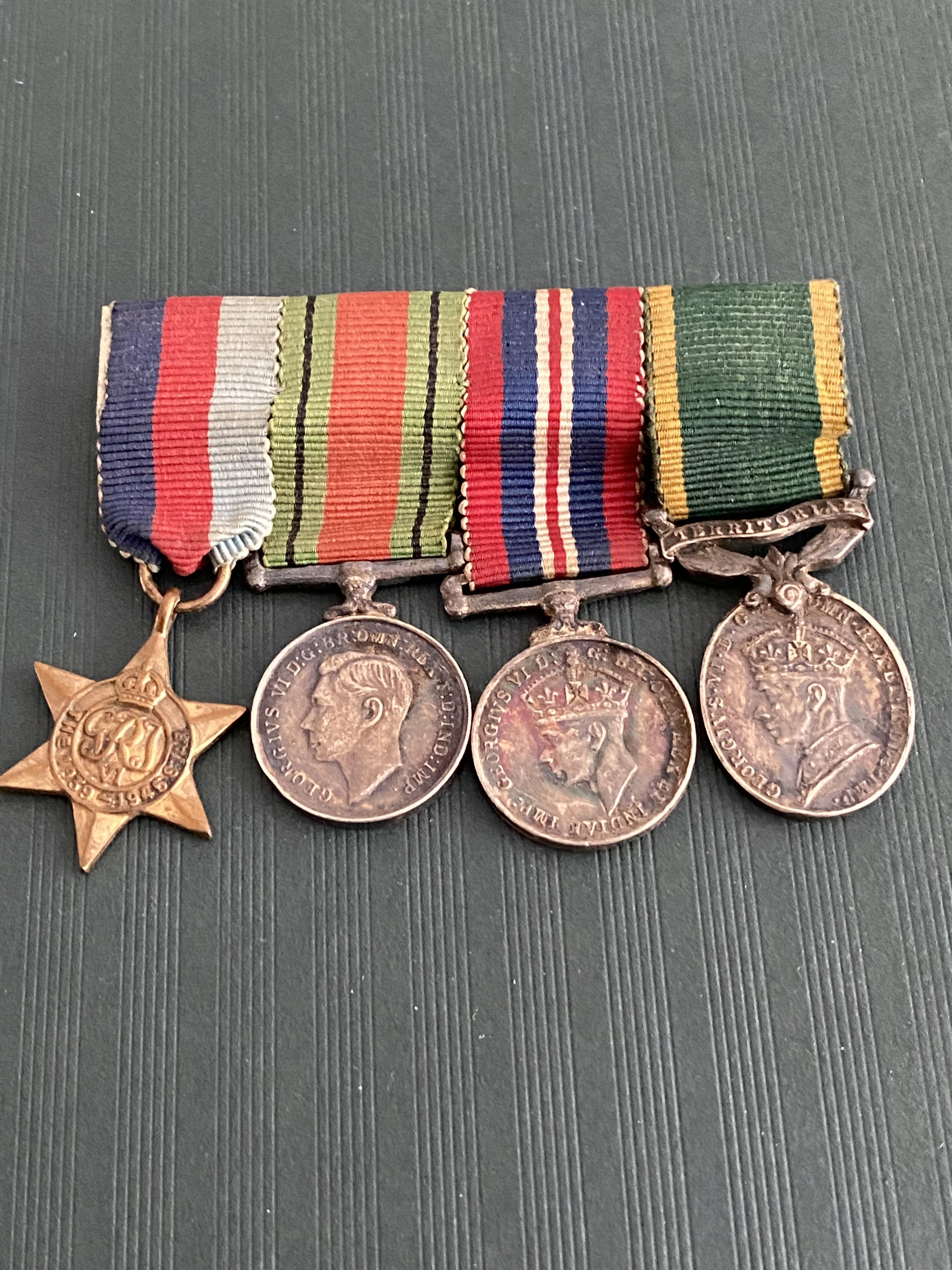 Group of 4 - Miniatures - Mounted On Bar. 1939/45 Star - Defence Medal - War Medal - Territorial Efficiency Medal